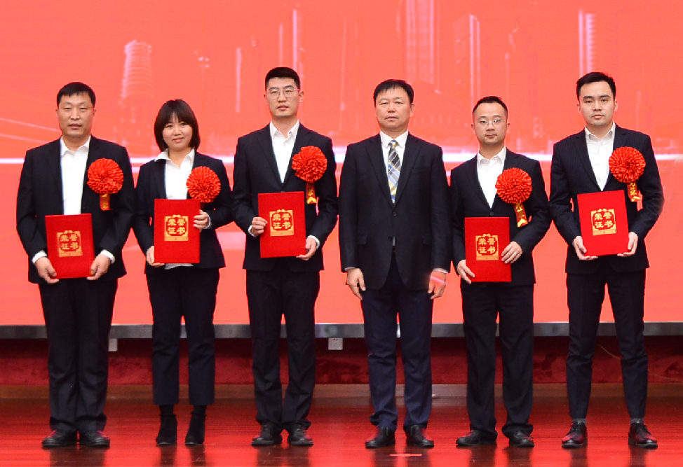 ▲董事長(zhǎng)徐敏俊(左三)為5個(gè)先進(jìn)集體頒獎(jiǎng)
