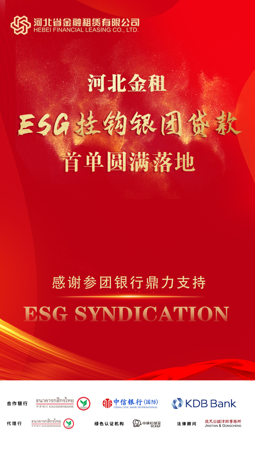 近期,河北省金融租賃有限公司(以下簡稱“河北金租”)成功募集首筆可持續發展(ESG)掛鉤銀團貸款,這是金租行業開展的首單境內ESG掛鉤銀團貸款業務,也是河北金租貫徹監管政策要求,履行企業社會責任,積極探索綠色租賃業務的又一重要舉…